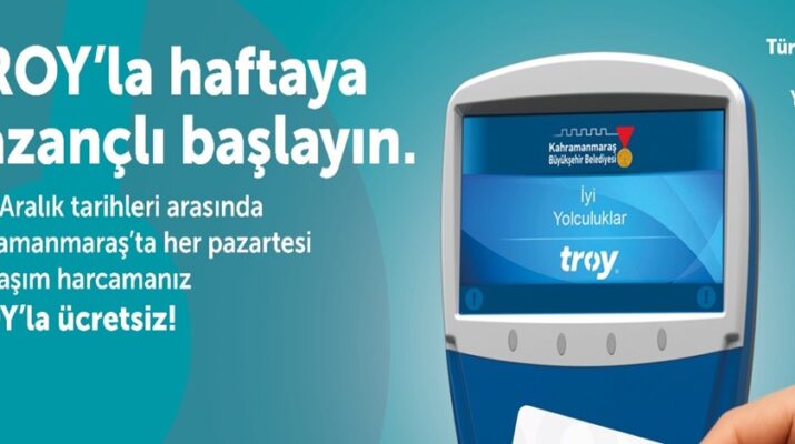 Şehir genelinde hizmet veren Büyükşehir Belediyesi otobüsleri ile özel halk otobüslerinde 1 – 29 Aralık tarihleri arasında her pazartesi günü TROY logolu temassız kredi kartlarıyla yapılacak ilk ulaşım ödemeleri ücretsiz olacak.