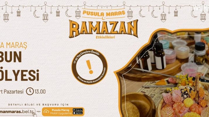 Kahramanmaraş Büyükşehir Belediyesinin gençlik markası Pusula Maraş, Ramazan ayının manevi atmosferini gençlerle buluşturacak etkinliklerine bir yenisini ekliyor. Ramazan’ın paylaşma, üretme ve öğrenme ruhunu gençlere aktarmayı amaçlayan Pusula Maraş, bu kez eğitici ve keyifli bir sabun yapımı atölyesi düzenleyecek. Gençlerin sosyal, kültürel ve geleneksel değerlerle buluşmasını hedefleyen program kapsamında gerçekleştirilecek atölye hem uygulamalı eğitim hem de yaratıcı deneyim fırsatı sunacak.
