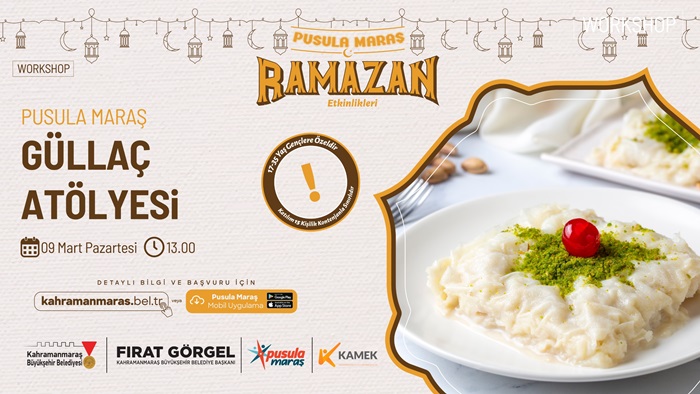 Büyükşehir Belediyesinin gençlik markası Pusula Maraş, gençlere yönelik “Güllaç Yapım Atölyesi” düzenleyecek. 9 Mart Pazartesi günü gerçekleştirilecek olan etkinlikte gençler, Ramazan ayının vazgeçilmezlerinden güllacın yapımını uygulamalı olarak öğrenme fırsatı bulacak.